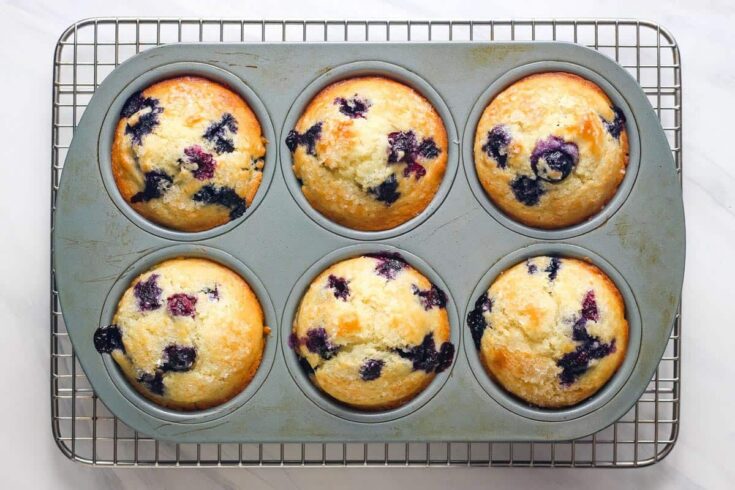 These toaster oven blueberry muffins are sweet, tender, and packed with juicy berries. The best part? The small batch recipe makes just 6 muffins!
