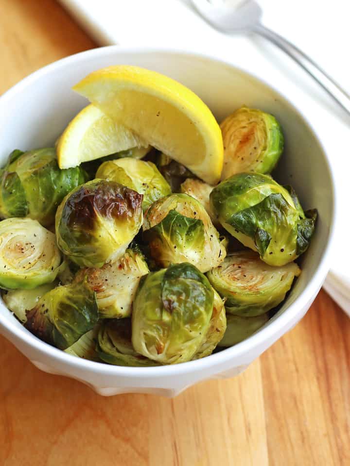 Skip the raw veggie platter and serve these deliciously tender-yet-toothy roasted Brussels sprouts instead. Enjoy with peanut lime sauce or this quick dijon vinaigrette for dipping.