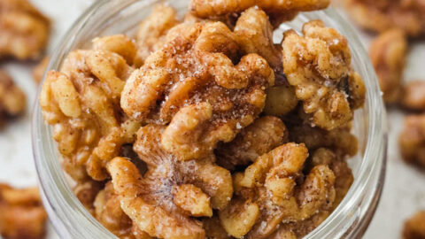Olive oil, maple syrup, and a dusting of cinnamon sugar give these toasted walnuts a lightly sweet and crispy texture that’s sure to delight.