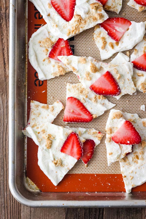 You’re going to want to eat this frozen bark all summer long. It’s deliciously sweet, tangy, and incredibly refreshing on a hot day.